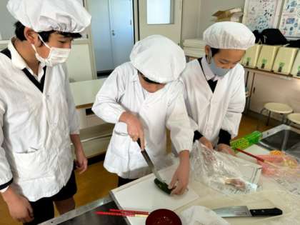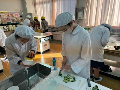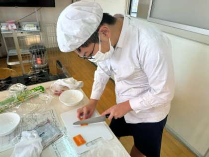 班でどの順番で調理をするか相談しながら、それぞれが料理を始めていました。