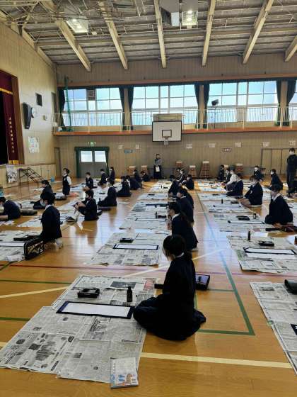 6年生は今年で4回目の席書会なので、慣れた様子で準備完了です。