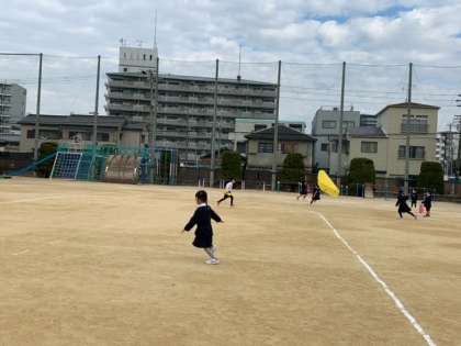 凧を作った後、2年生と一緒に凧上げをしました。