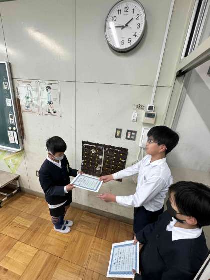 なわとびタイムで優秀な成績を残した児童の表彰がありました。