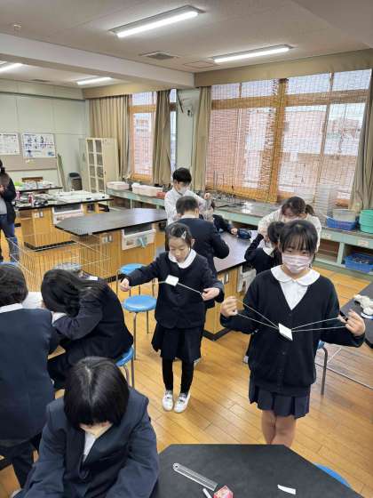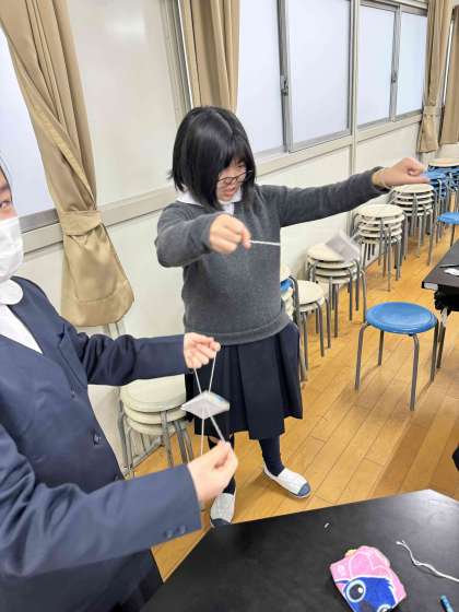今日はぶんぶんコマを作りました。なかなか上手に回らず苦戦していましたが、何とかゆっくりと回るようになりました。