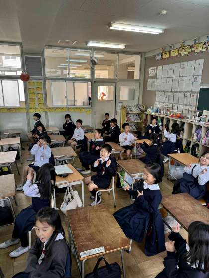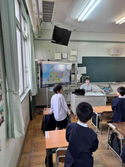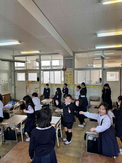 英語の曲に合わせて踊って歌ってニコニコ笑顔です。