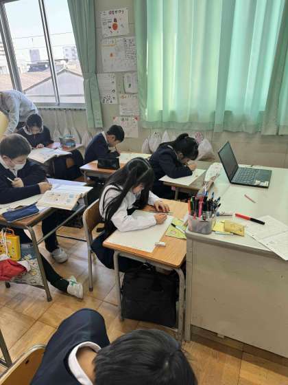 直方体と立方体の学習が始まりました。今日は工作用紙を使って箱作りをしました。そこから面や辺の学習を進めています。