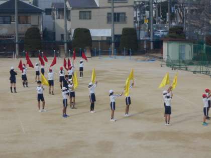 集団演技、隊形移動をがんばっています。
