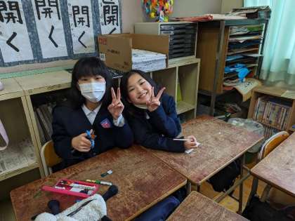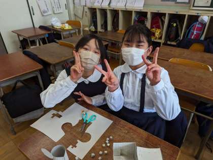 食べ終わって教室で工作をしながら過ごしています。