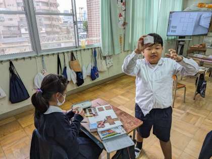 サイコロの形をつくっています。