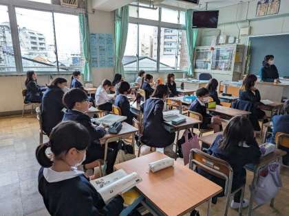 先日の学習参観の発表をみんなで振り返っています。