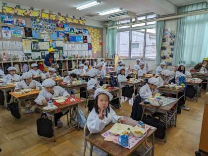 今日は給食の時間に放送委員会から6年生に送りたい歌リクエストがありました。放送委員会の6年生リズムにノリノリでした。