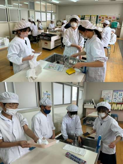今日は、5年生の調理実習の最後にホットケーキを作りました。準備の仕方を聞き、使う道具を洗うところからスタートしました。