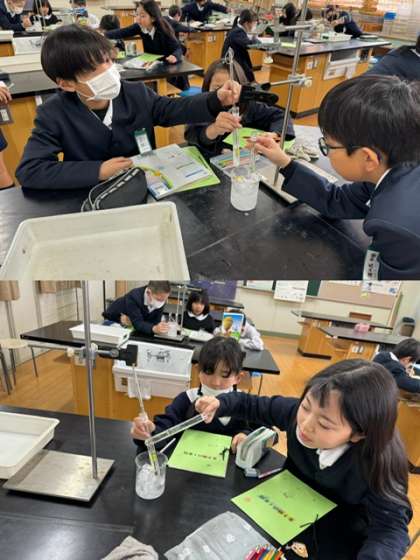 水は本当に0℃になると凍り始め、氷に変化すると体積が大きくなるかを調べる実験をしました。それに加え、4年生で観察してきた生き物をまとめた冊子を作り、4年生のまとめをしました。