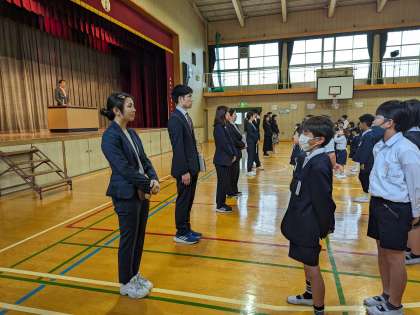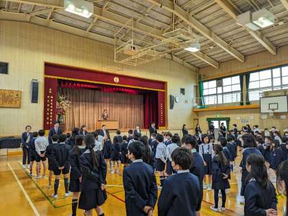 新しく来られた先生方のごあいさつもしっかり聞いていました。