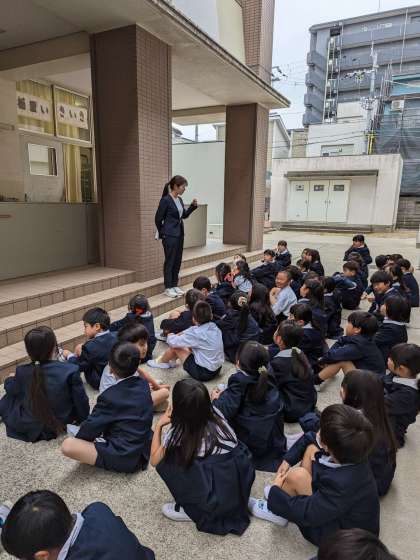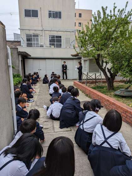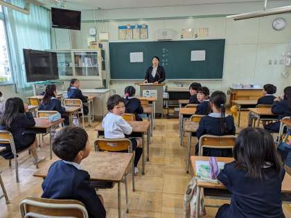 新しい学年、新しい学級で新学年の方針を説明しています。さあやるぞ!の気持ちで初日をスタートさせています。