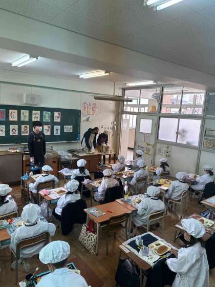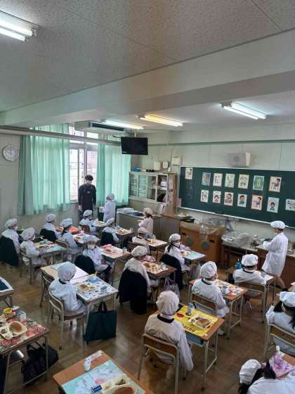 給食の準備を一つ一つ確認しながら行っています。少しずつわかってきたようです。