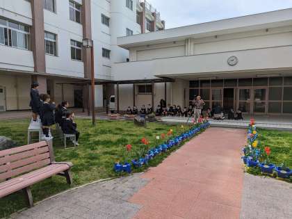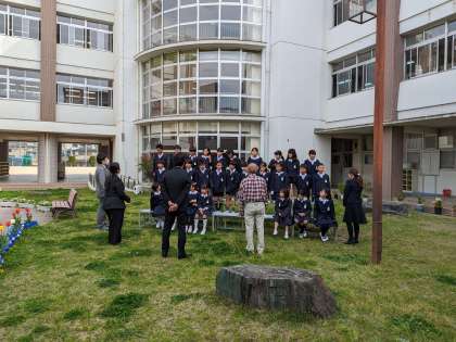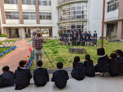 爽やかな春風の中、新学級の集合写真を撮影しました。