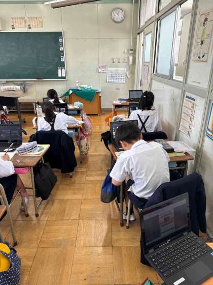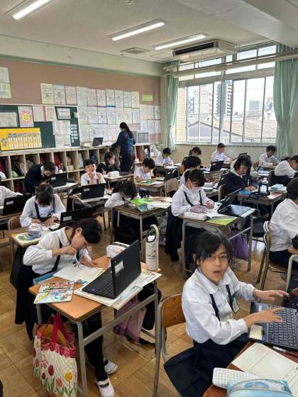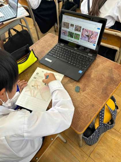 春の生物を端末で検索してワークシートにまとめています。上手に検索しています。