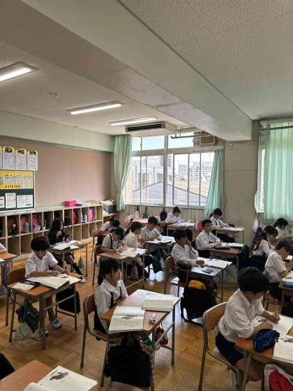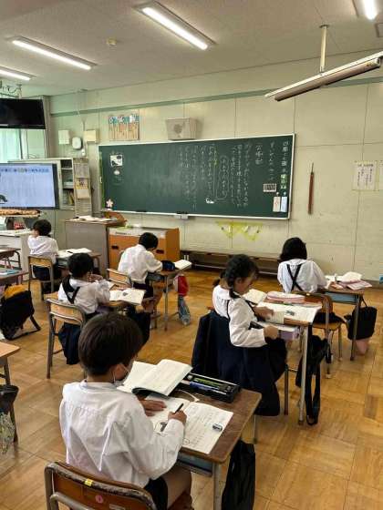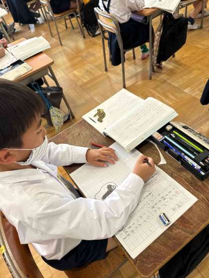 すいせんのラッパの学習をしています。「」の中の会話文を気持ちを考えながら上手に音読できました。とても張り切っています。