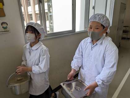 1年生のために全力で頑張ります。自分たちが1年生のときに、6年生にしてもらったように、給食と、優しさを届けられる6年生。廊下や階段の、歩行にも気をつけましょう。