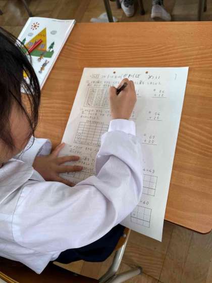 算数で学習していた表の整理のテストを行いました。上手に整理しながら問題が解けたでしょうか。