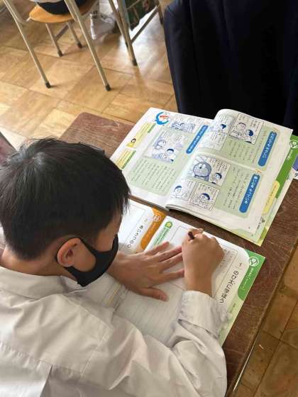 道徳科の「のび太に学ぼう」という学習を行いました。みんなにとっても身近なドラえもんなので、のび太の良いところなどしっかりと考えて発表することができました。