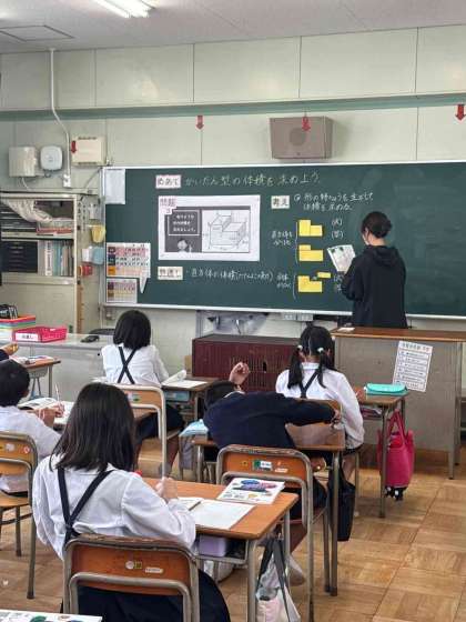 算数科の体積を求める学習を行いました。今日は階段状になっている立体の体積なので、切ったりつなげたり多様な考え方で学びを深める事ができました。
