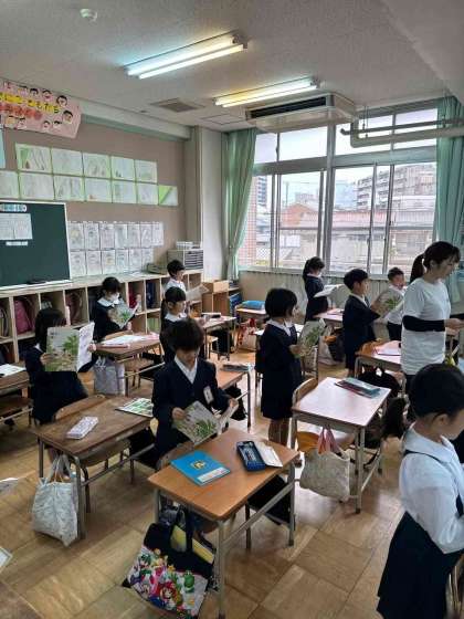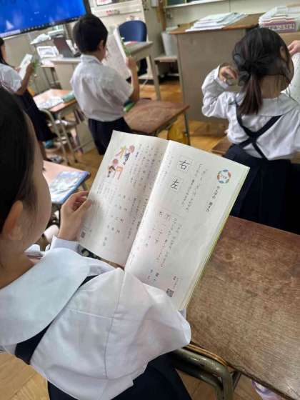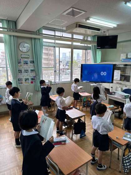 音読を行っています。正しい姿勢、ハキハキした声で頑張っています。