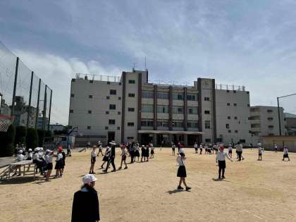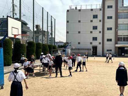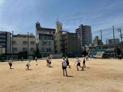 今日は久しぶりによく晴れていたので、運動場には大勢の児童が出て運動していました。