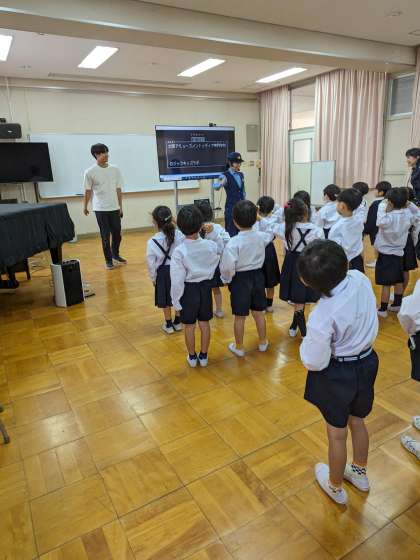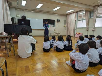 安全な登下校の実現のために、大阪府警から、生活安全課の方が来られ1年生に誘拐防止について話をしてくださいました。