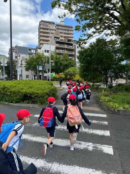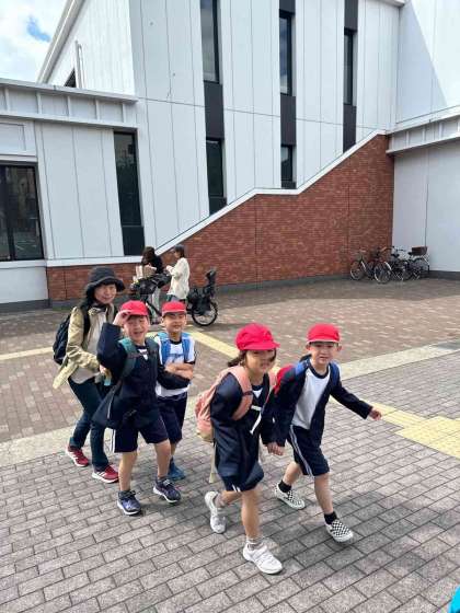 今日は遠足です。車内のマナーもよく無事に灘駅に到着です。