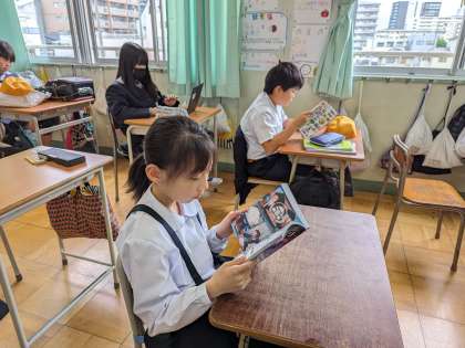 自分たちで提出物をまとめています。課題が終わったら読書です。切り替えが早く、動きがスムーズです。さすが6年生です!