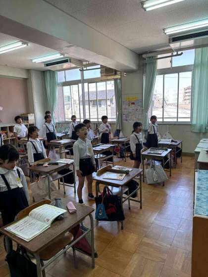 美しい歌声とリコーダーが響き渡っていたので、思わず参観しました。3年生から始まったリコーダーですが、タンギングに気をつけながら上手になっています。