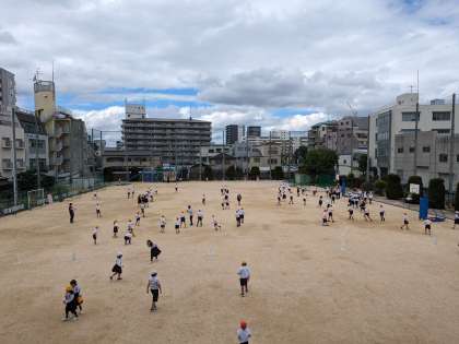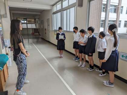 集会委員会のリハーサル練習を頑張っています。今年度の初のたてわり集会でのゲームです。
