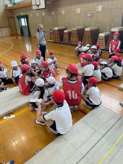 1年生に測定の仕方を優しく教えたり、応援して励ましたりと、しっかりサポートしてくれました。
