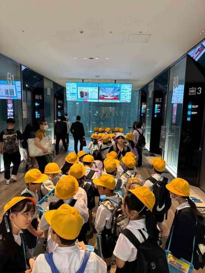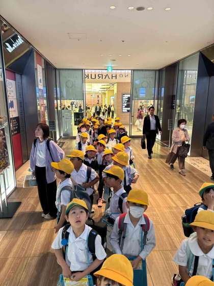 今日はあべのハルカスと環状線一周の社会見学デーです。環状線を半周してあべのハルカスに到着しました。
