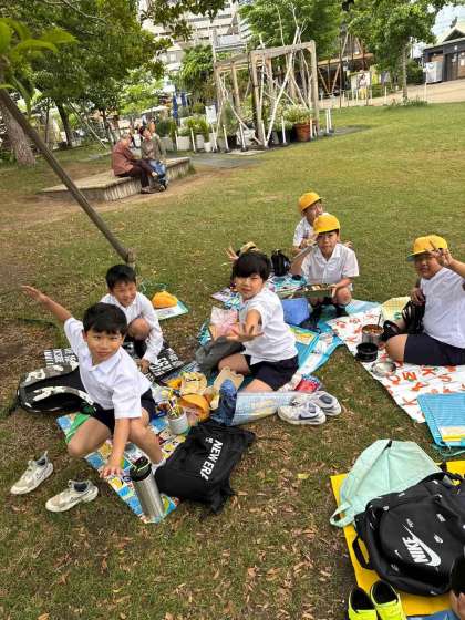 てんしばでお弁当タイムです。朝早くからのお弁当づくりありがとうございました。