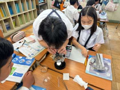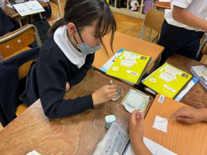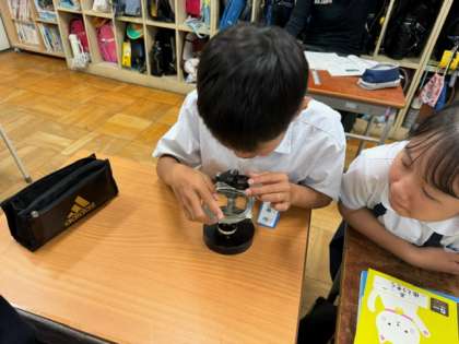 かいぼうけんび鏡の使い方を学習をしました。メダカのたまごに付いている付着糸を丁寧に取り、観察することができました。
