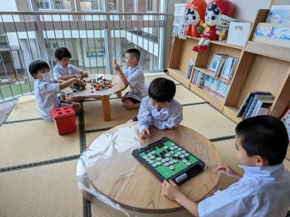 雨の日はふれあい広場で読書をしたり、室内遊びゲームをして静かに過ごします。