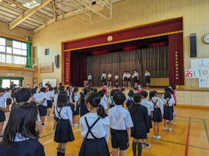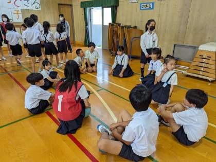 ボール回しゲームをしました。音楽が止まったタイミングでボールを持っている人がアウトです。みんなルールを守って楽しく遊んでいました。