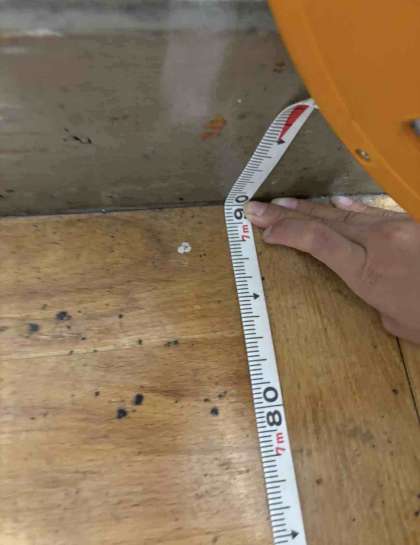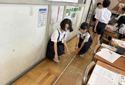 まきじゃくを使い、教室の縦と横長さや廊下の長さ、バケツの周りの長さなど、いろいろなものをはかりました。