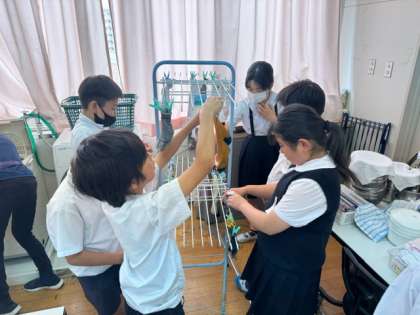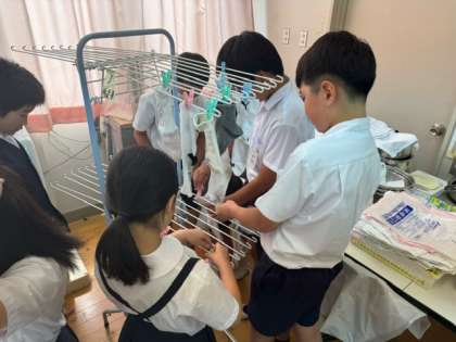 合わせて、昔の人は毎日、洗濯機ではなく洗濯板で洗っていたことを学習しました。来週には、自分で手洗いしたものと、洗濯機で洗ったものを比べて学習を進めていきます。
