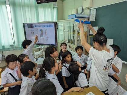 虫かごの中に興味津々。生活科の学習にも意欲的です。