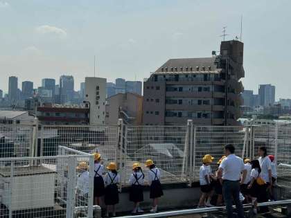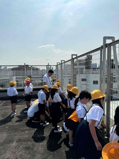 今日は屋上に上がって4方位の確認などを行いました。方位磁針の使い方もわかっていろいろと試していました。屋上からの眺めはどうだったかな?