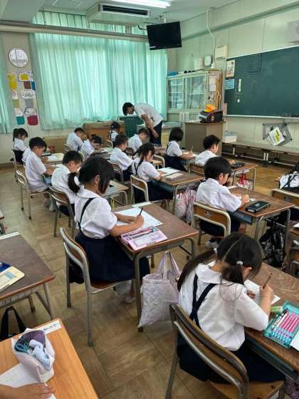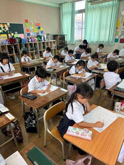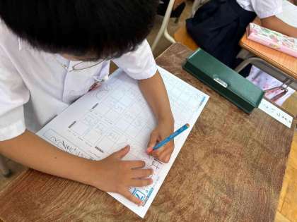 ひらがなシートに慎重に慎重に。丁寧に書いています。この丁寧さが今後につながります。