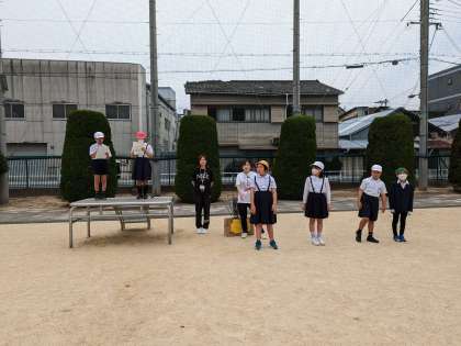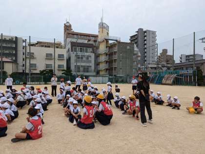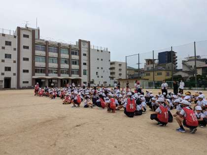 全校鬼ごっこでみんなと仲良く触れ合いました。大きな運動場で、安全に遊べるように工夫することも大切です。