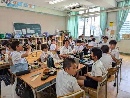 社会見学延期に伴い、教室内で弁当をいただきます。なかなかない光景ですが、美味しくいただきます。元気になりました社会見学も弁当の用意をお願いいたします。