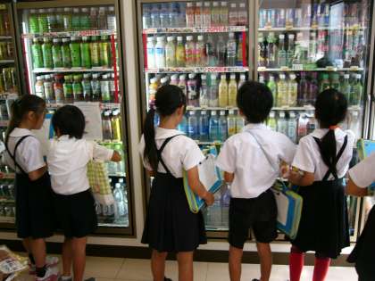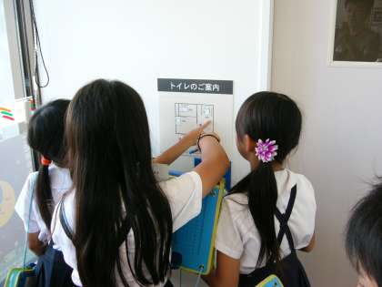今日は、3年生がセブンイレブンに社会見学に行きました。秋とはいえ、暑い日だったので、お店の冷房に「すずしぃー!!」の声。陳列の商品を見たり、お店の人に工夫を聞いたりしました。手書きでPOPをかいたり、また、清掃をきっちりと行き届かせたりということがわかりました。車いすに対応したトイレや点字の案内を見つける子もいました。お店の人にもしっかり質問し、普段行っても聞くことができないようなお話をお聞きすることができ、大変勉強になりました。