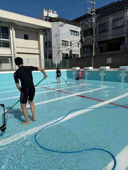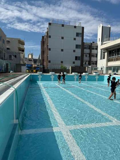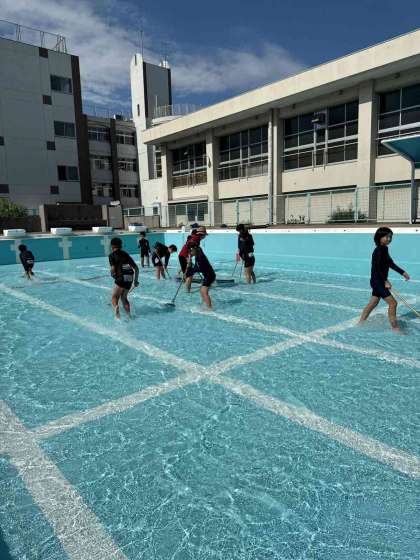今日は換水日でした。委員会の子たちが丁寧に掃除してくれました。自分たちで掃除する事で学校愛が深まります。そして、晴天の下、少し水遊びもできて満喫していました。