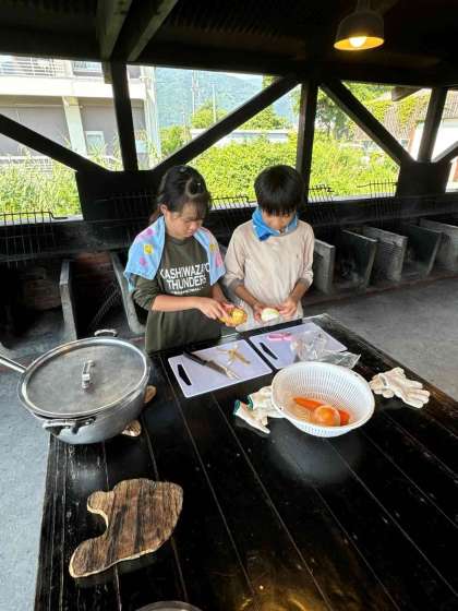 慎重に慎重に・・・「あっむき過ぎたー」など言いながら楽しんでます
