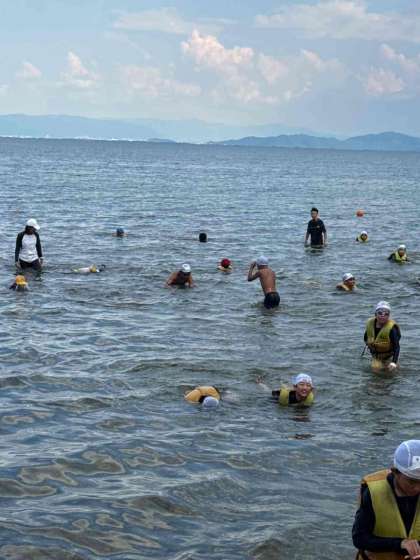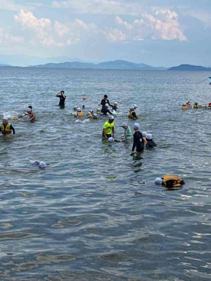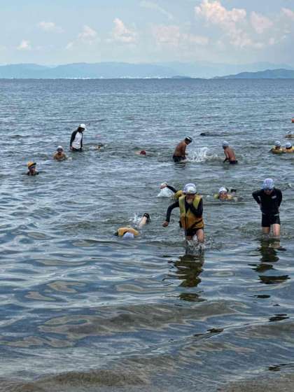 湖水浴を満喫しています。