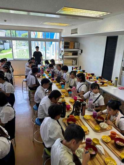 最後の食事が終了しました。もうすぐ閉校式を行い、びわ湖青少年の家を出発します。