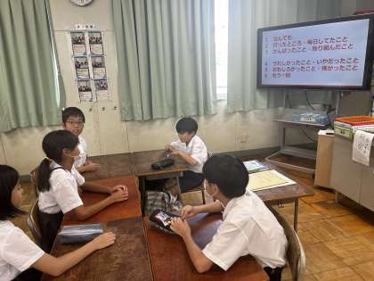 に子どもたちの元気な声が戻ってきました。今週は4時間授業だったため、少しずつエンジンをかけています。今日は、自分の夏休みの出来事を思い思いに話し合っていました。林間の経験を生かし、2学期にむけて頑張ってほしいと思います。